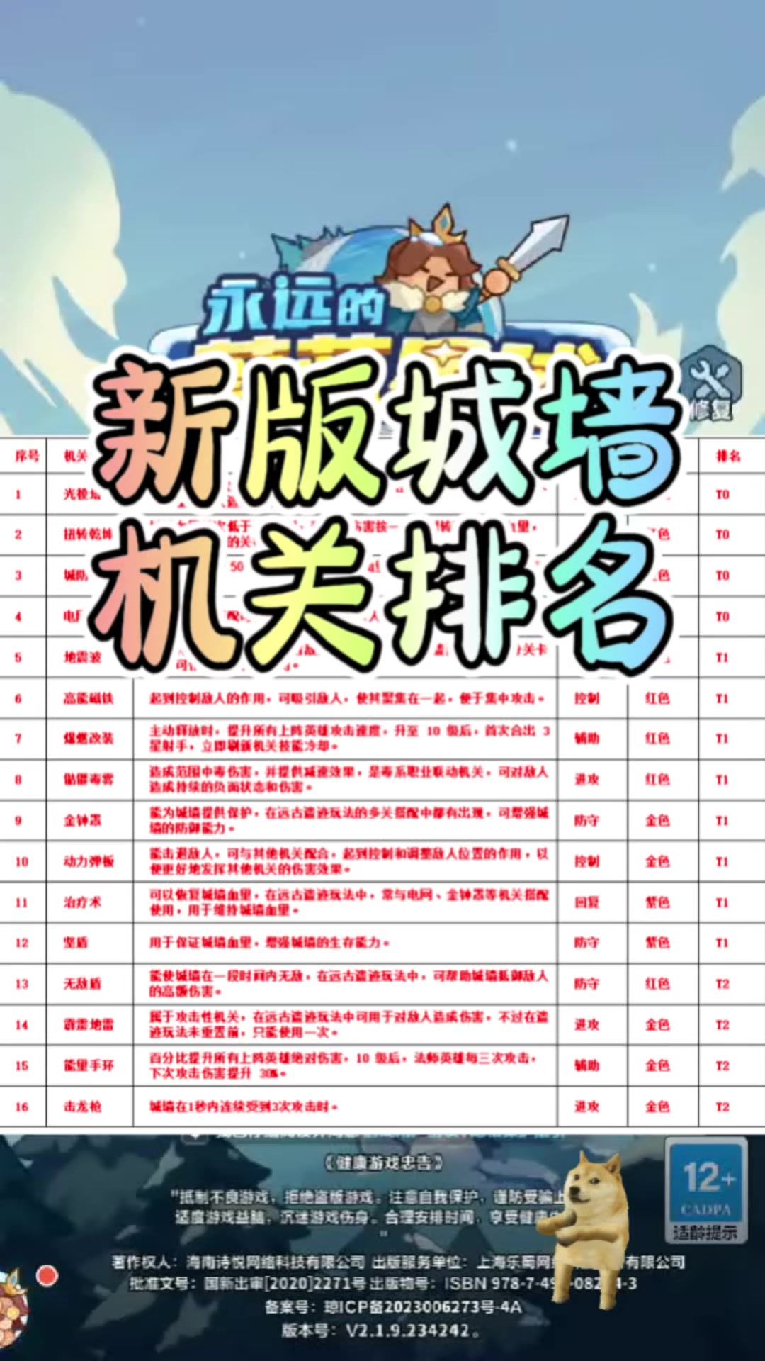 哈喽各位玩家老爷们,阿祖今天继续我们的 #蔚蓝星绽计划 #蔚蓝星绽计划,微氪玩家最强省钱攻略系列,话不多说,系列第六篇开讲。 城墙这个新玩法出现,对我们的玩法有了很多新的改变,阿祖应多位观众老爷的私下要求,这就来总结一下城墙技能的妙用。 首先我这里就不一一介绍城墙技能了,各位只要开通了城墙功能就都可以看得到,每个技能的升级数据也可以点击技能名称旁的灰色问号查看。 我把城墙技能归集成以下几个分