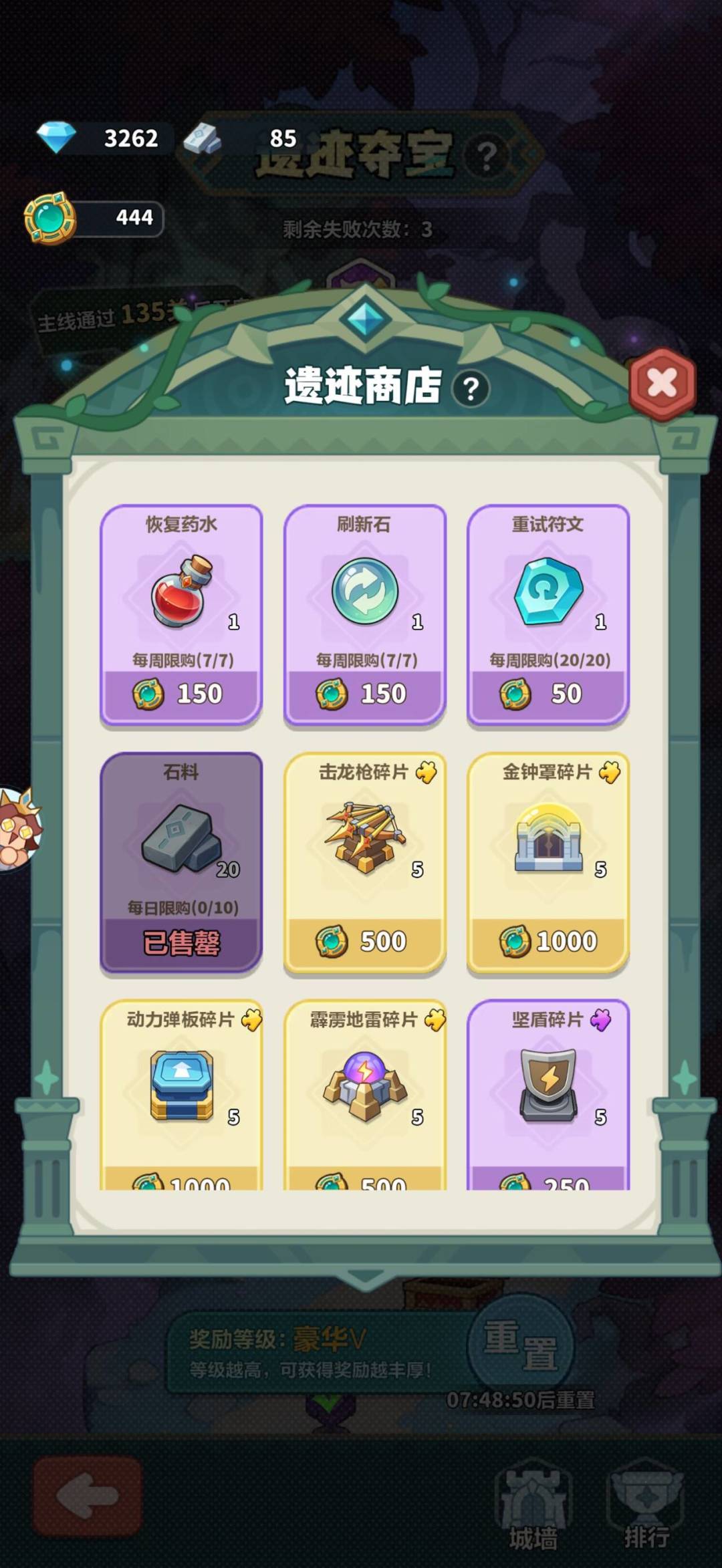 一、遗迹券使用策略 1. 使用时机:不建议在“珍稀Ⅰ”“珍稀Ⅱ”阶段使用遗迹券,因为这两个阶段仅产出金色机关碎片,性价比低。待能稳定打到“珍稀Ⅲ”及以上阶段时再用,此时可获取红色机关碎片,对提升战力帮助更大。 2. 获取途径:商店终身仅能兑换一次遗迹券;周卡每周赠送一张,微课玩家可考虑入手周卡,能加快机关碎片收集与机关等级提升进度。若暂不氪周卡,遗迹券也可先存着,等后期更关键的时候使用。 二、奖励
