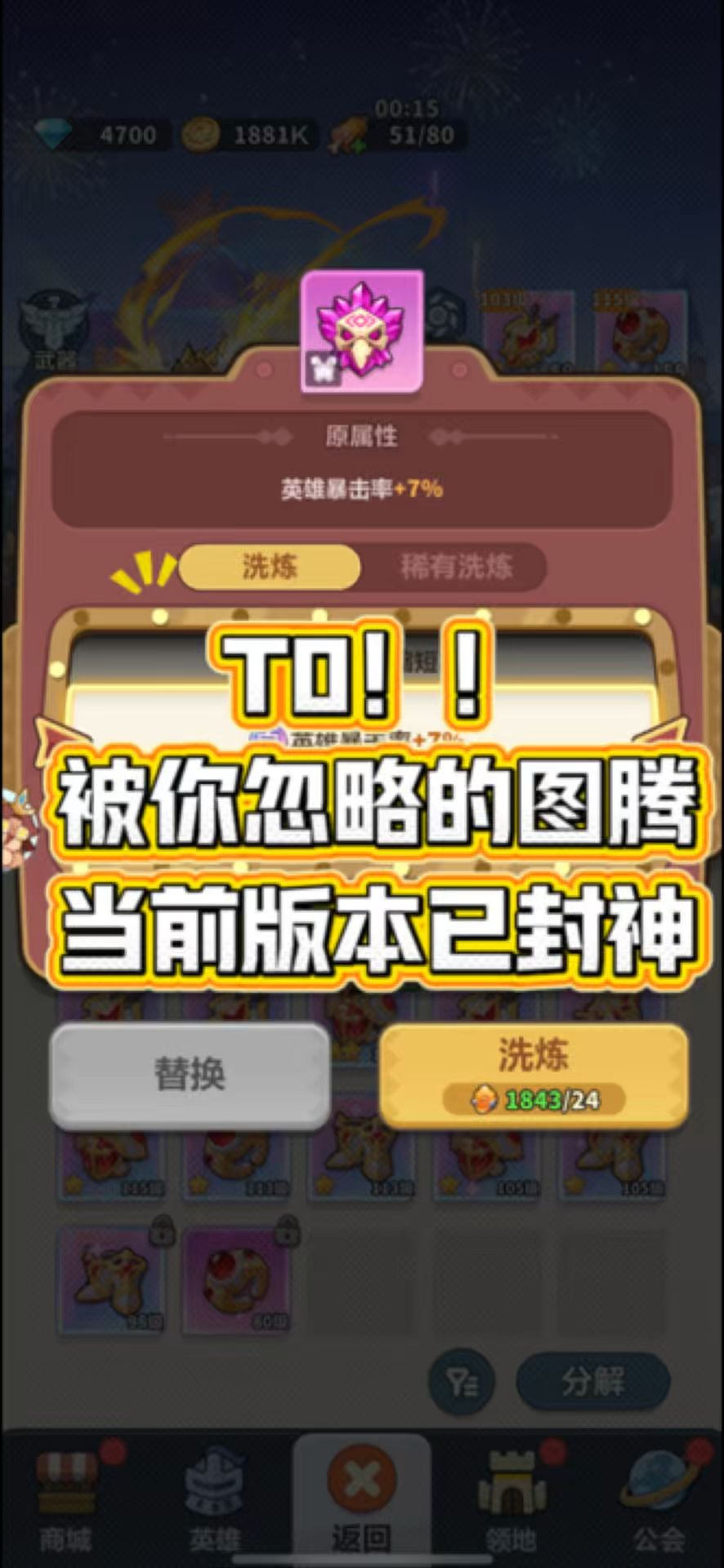 图腾洗炼重大更新—增加保底机制!