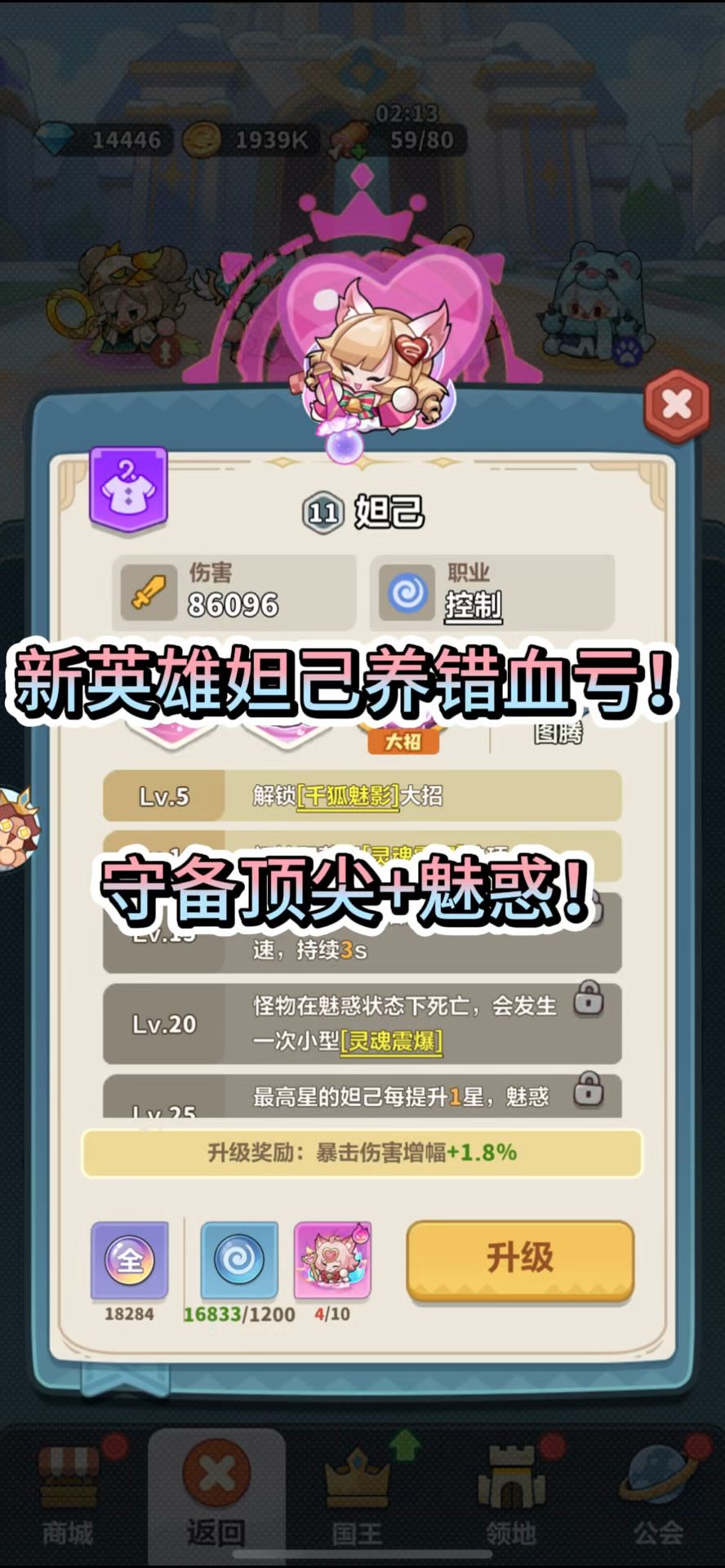 新英雄妲己养错血亏!守备顶尖+魅惑!