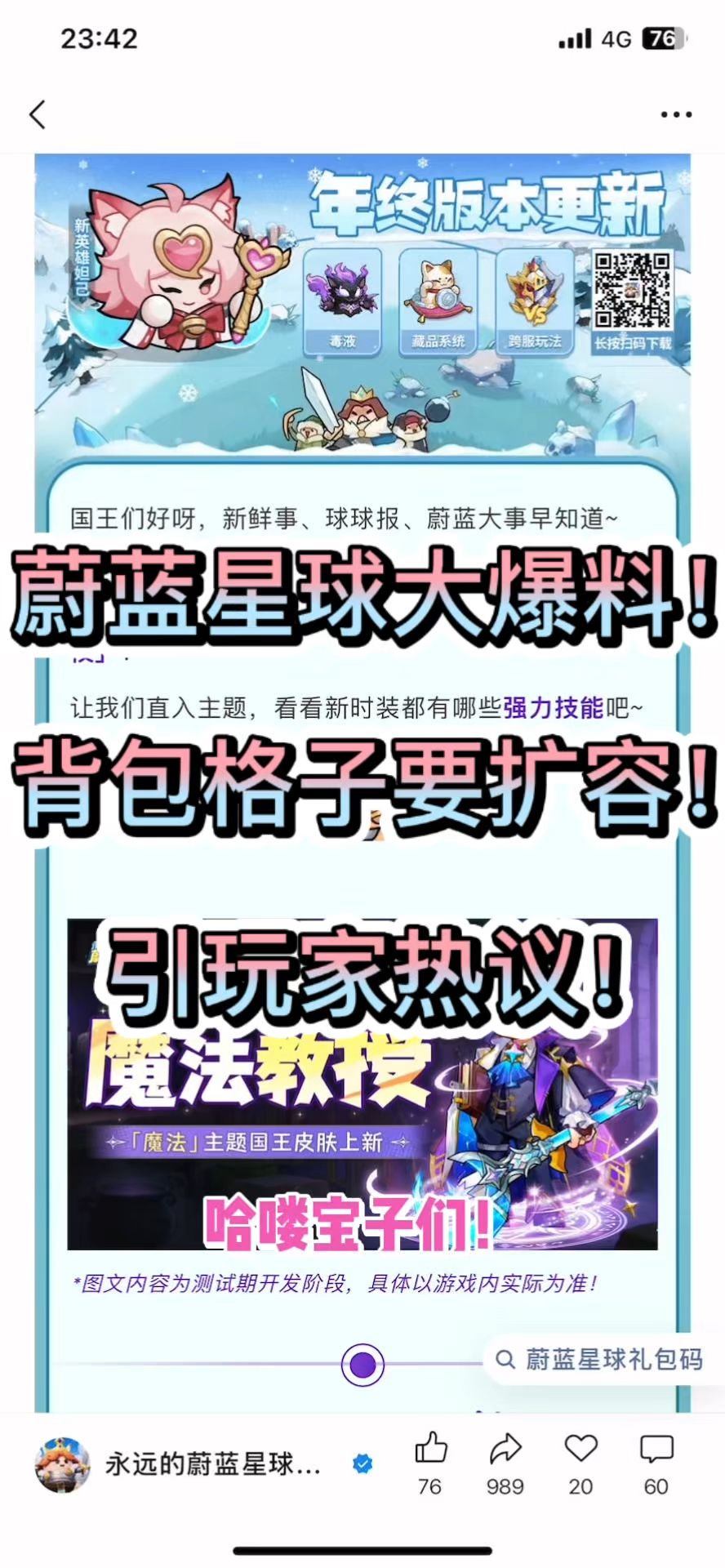 蔚蓝星球大爆料!背包格子要扩容!引玩家热议!