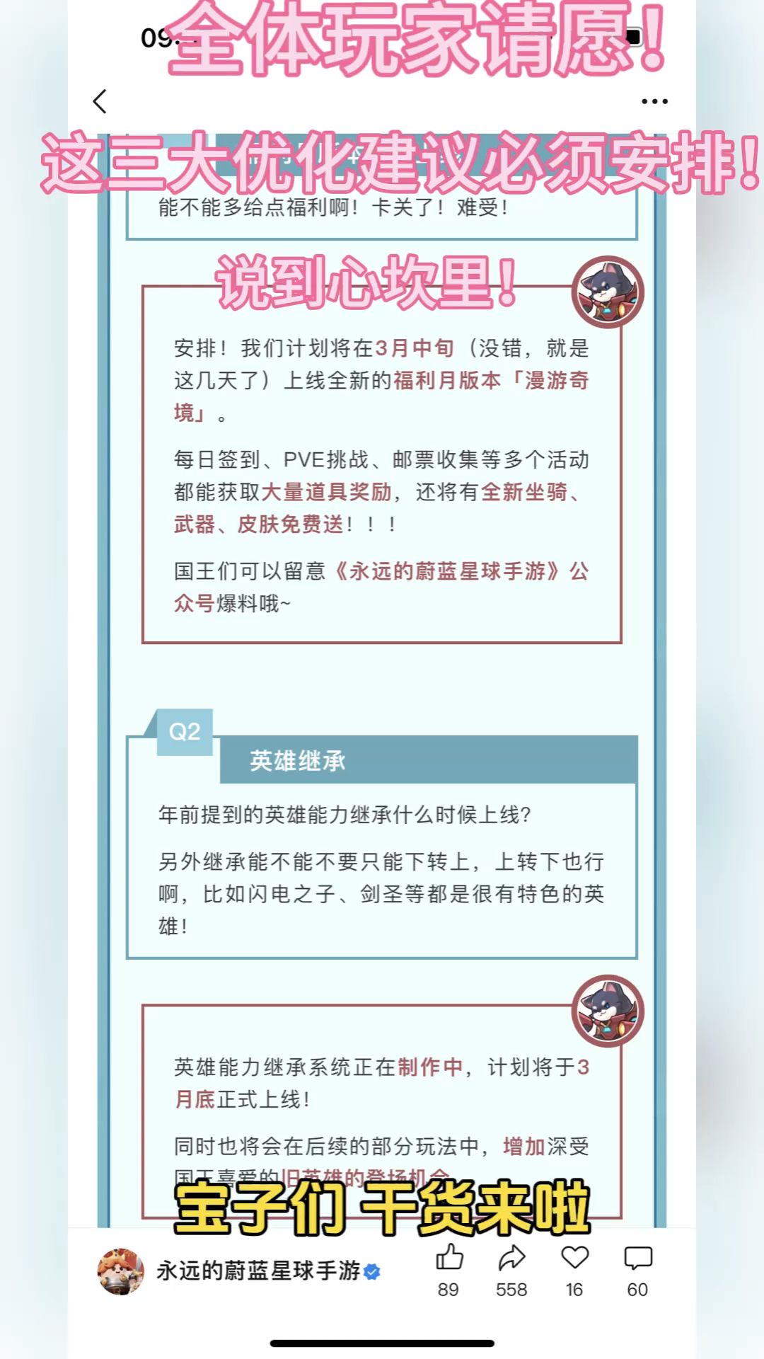 全体玩家请愿!这三大优化建议必须安排!说到心坎里!