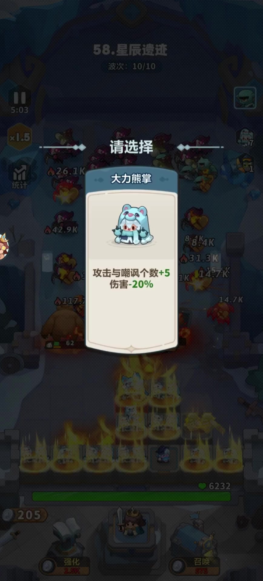 拿暴风、黑百合、钢铁汪和安妮的组合压根推不动,永远打不到满血。查了攻略发现第54关怪物电磁机甲、狂暴机甲遇到法师就会形成保护罩,暴风再厉害也打不透。