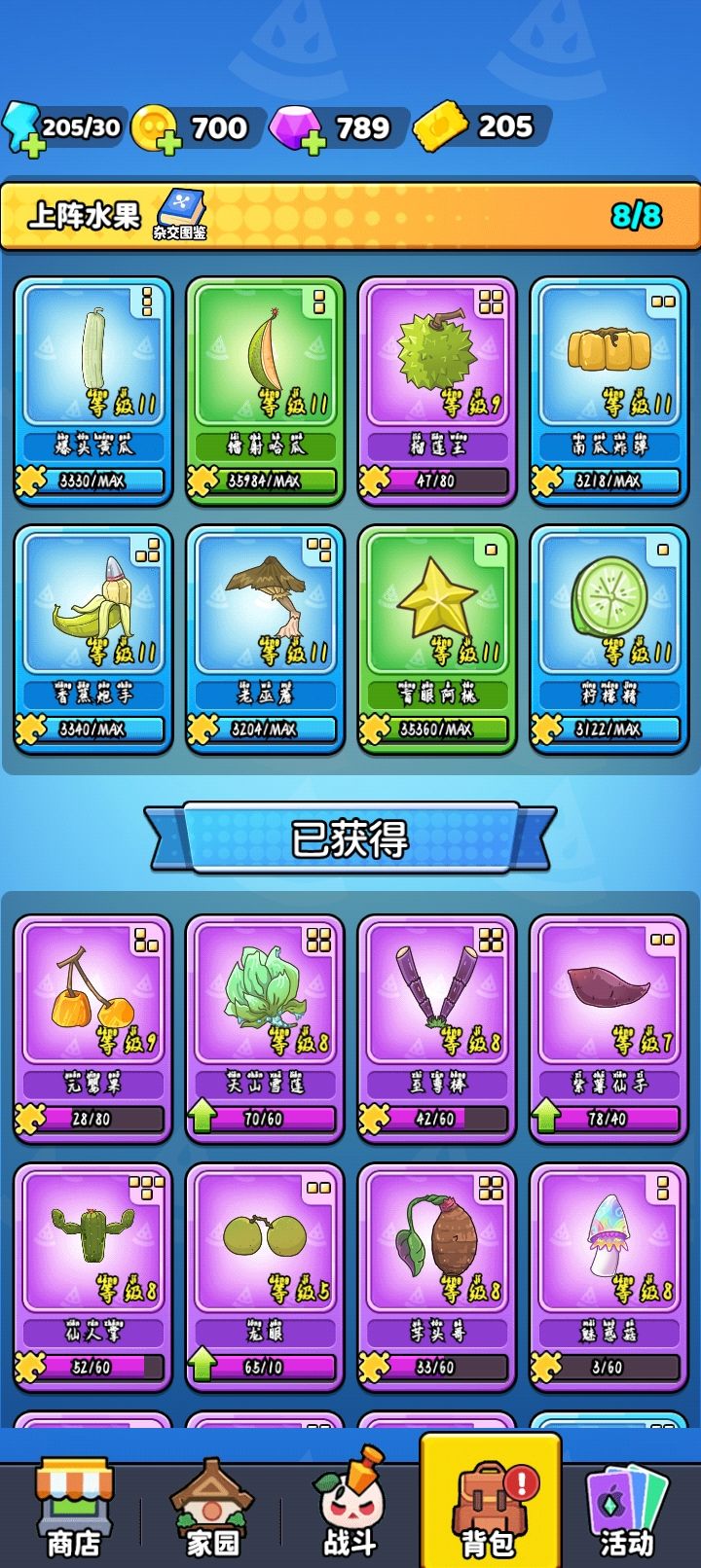 玩一段时间了绿色和蓝色品质基本上都满级紫色碎片不好搞,玩的是免广告版