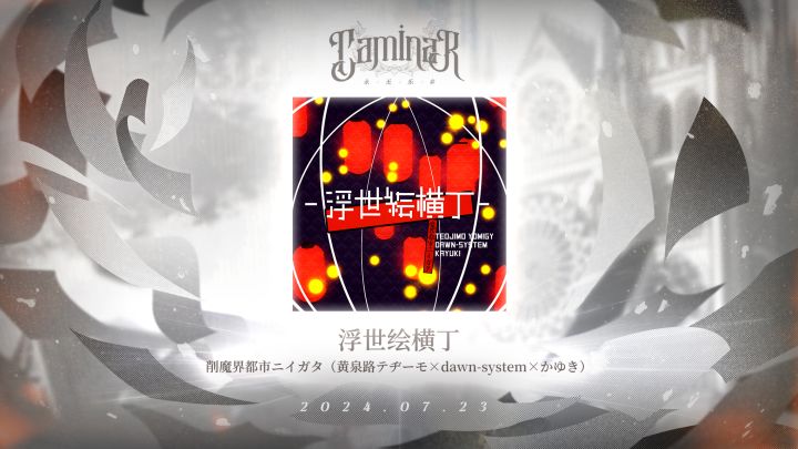 【CaminaR~永无乐乡x库璐璐音游嘉年华|活动曲目预告】 蝴蝶在紫发少女的指尖翩跹翻飞,轻轻叩响原野上空的寂静。跋涉山川河海,日月星斗,为能将这段旋律交予你手中—— 【当满月扑灭灯火,一直坠落直到迷路在都市街头。喧哗声顺着夜晚零零落落滚入喉中,妖鬼人形,诸般神魔,在这浮世交错升沉中如平常一样碰面、擦肩,然后再错过。】 授权曲#1:浮世絵横丁 by 魔界都市ニイガタ(黄泉路テヂーモ x daw