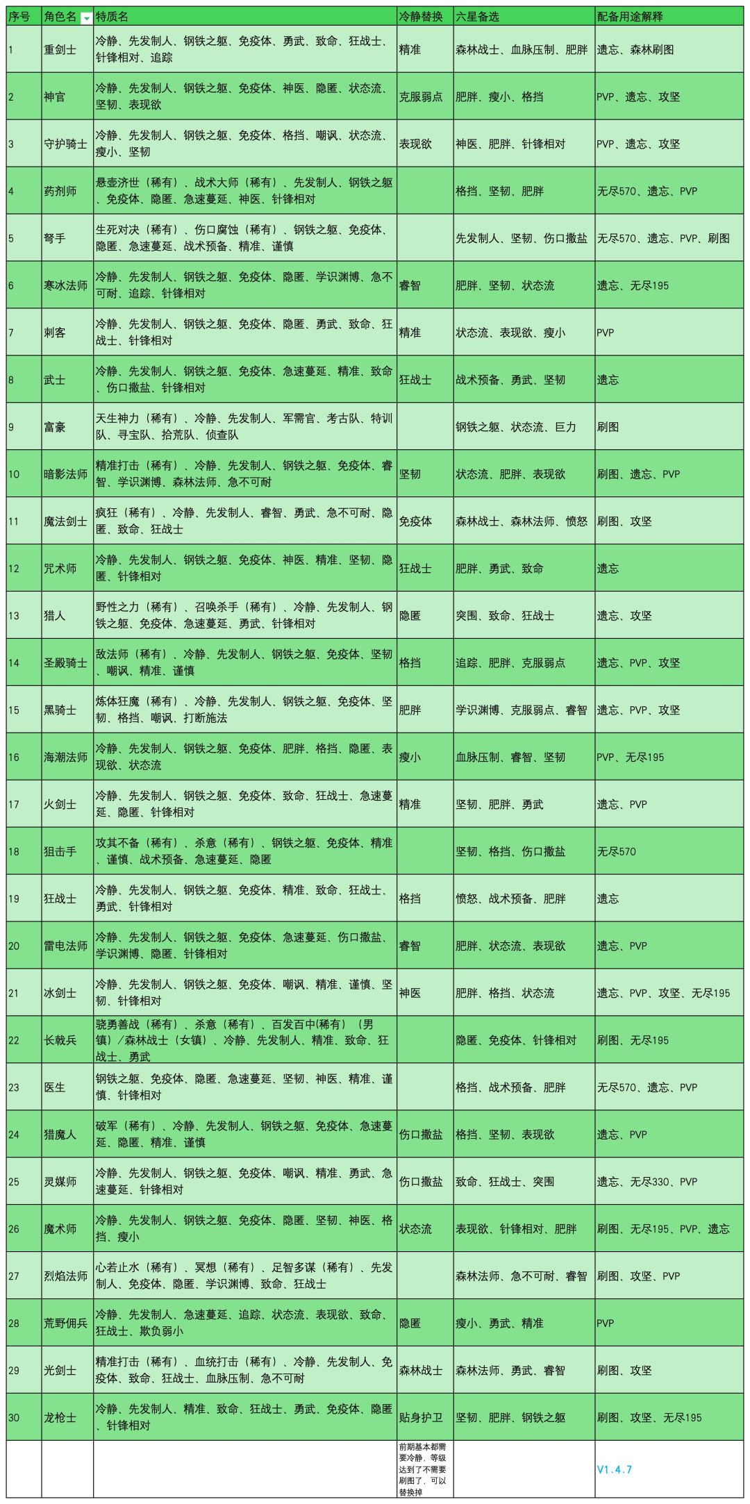 特质大全