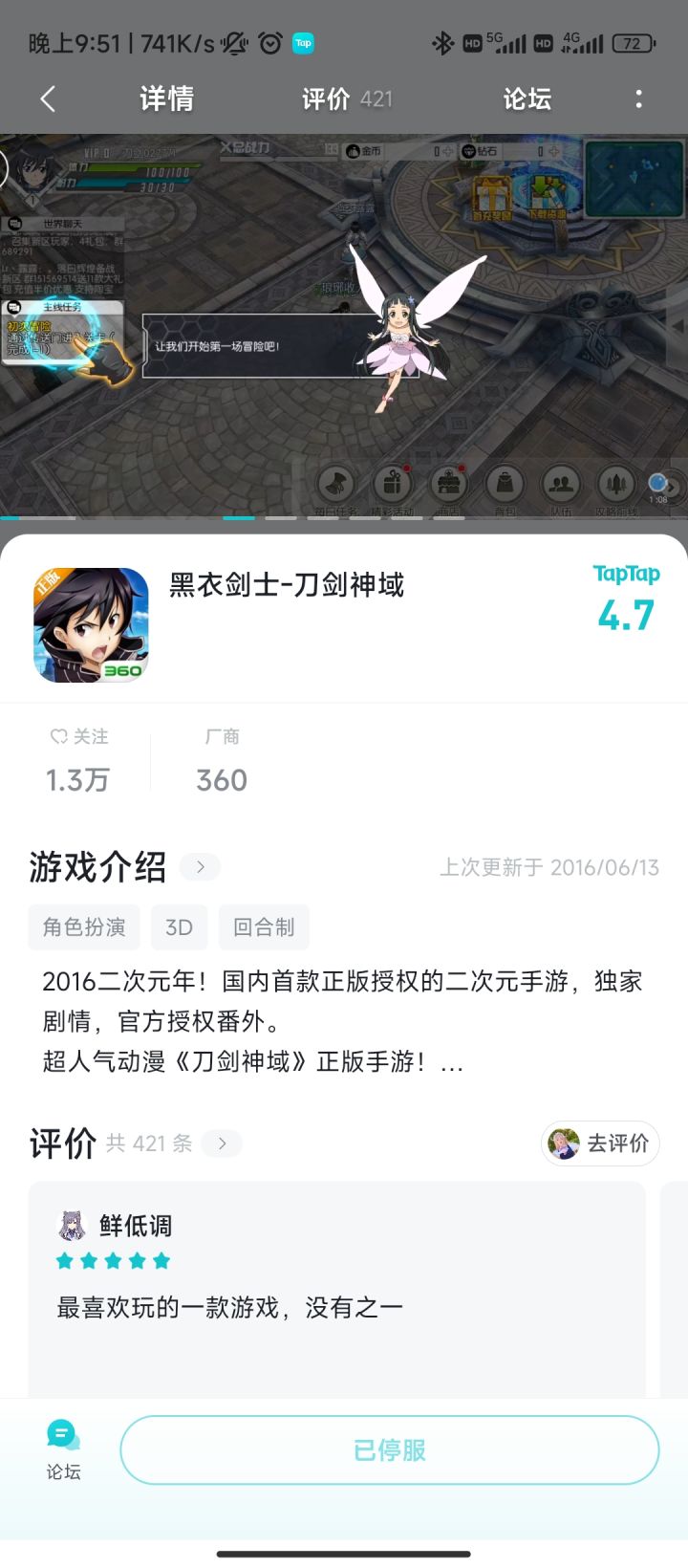 这个游戏对我来说意义非凡,这游戏还是我第一个氪金的游戏,当初还是第一次一个人去外面读书,这个游戏那时候刚出,陪了我很久呢,刚想回来养老的,居然关服了唉,可惜