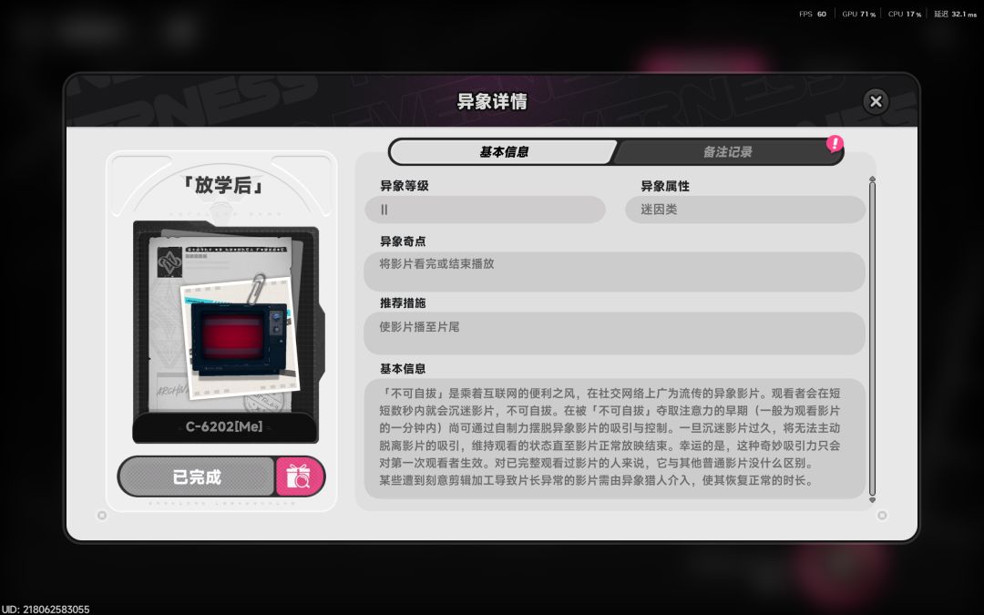 卡带效果: 史诗[2]:暗属性异能伤害提升10%。 传说[4]:无视敌人12%暗属性异能抗性。当装备者参与触发「黯星」或「浊燃」反应之后则提升至无视敌人24%暗属性异能抗性,持续20秒。 获取途径: 开启材料自选箱 兔子洞
