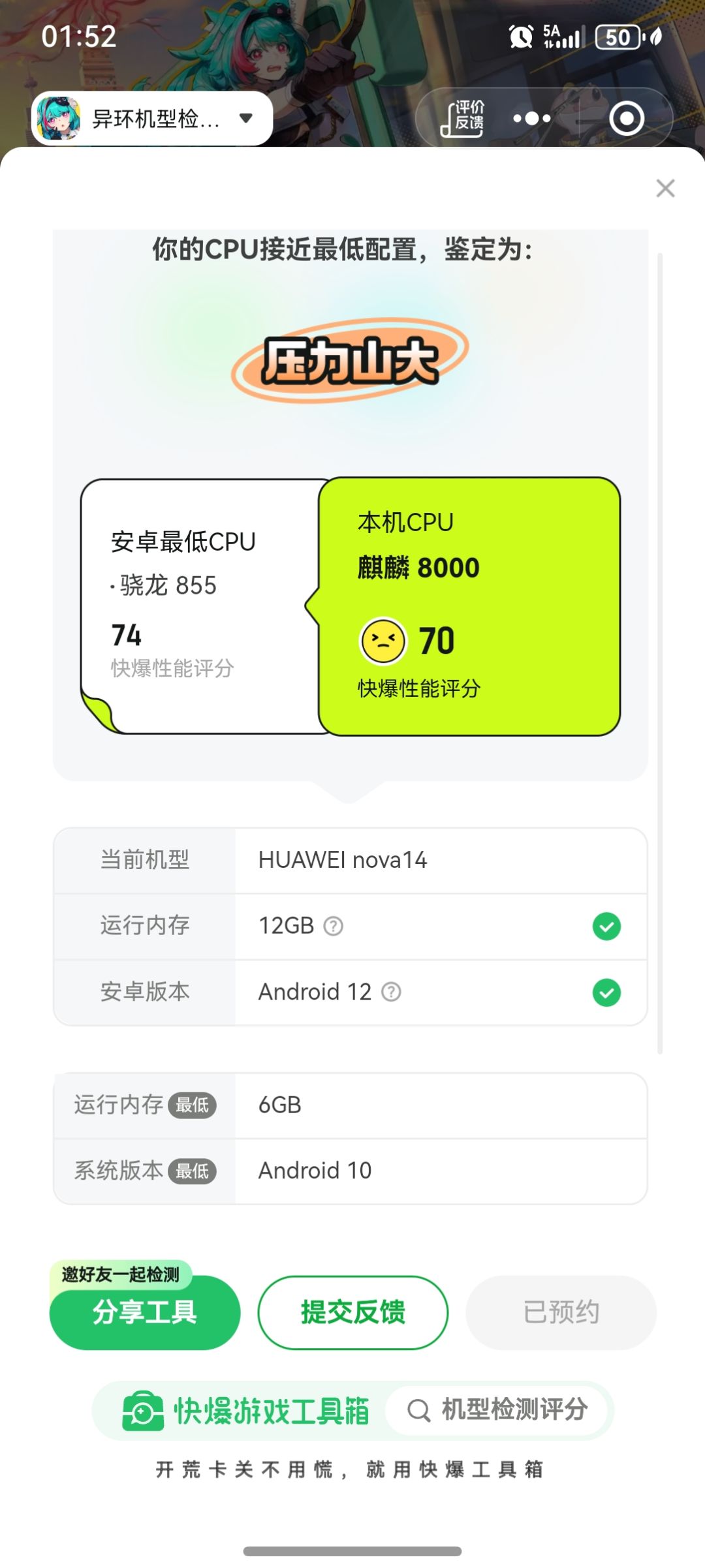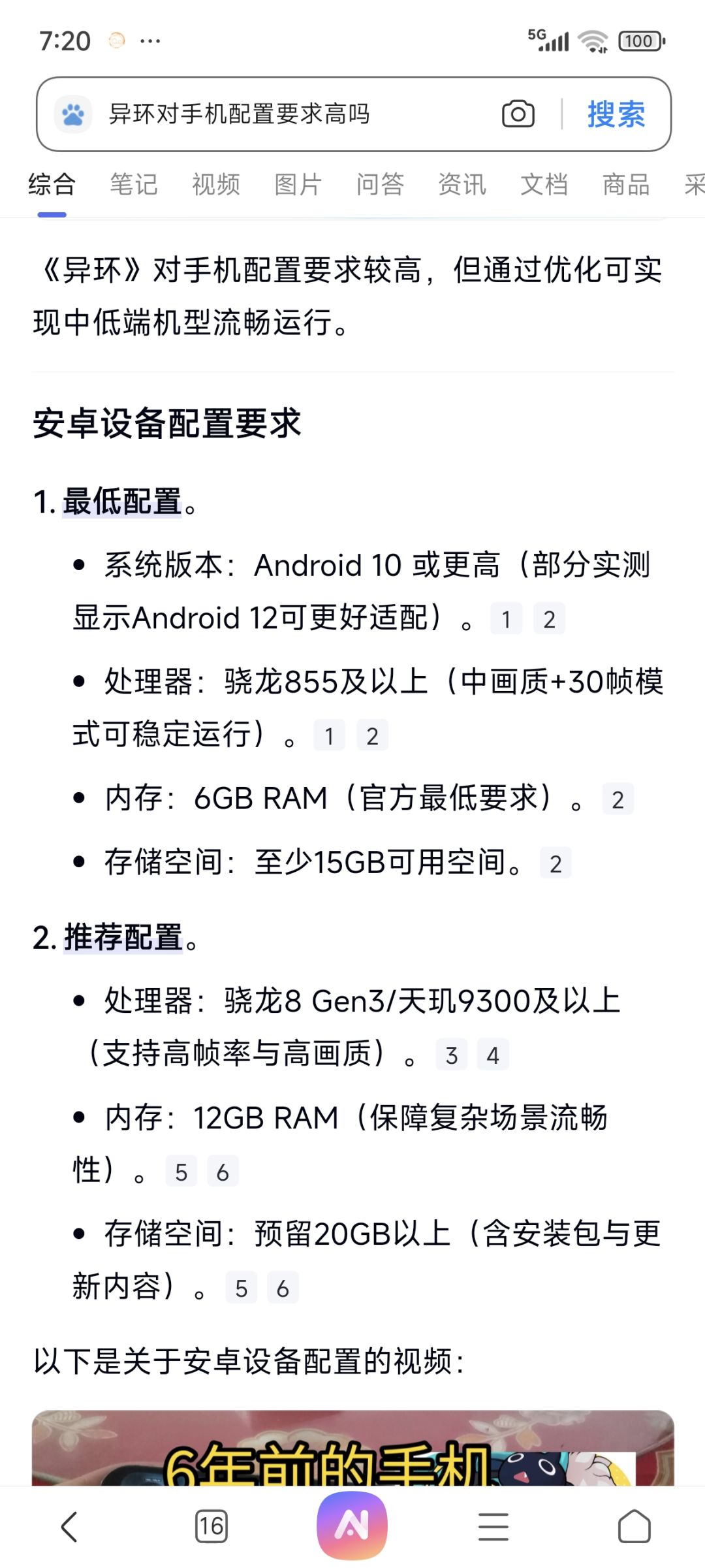 由于制作进度计划加快,pc电脑端基本完成,测试及其他问题,现如今剩下的重点攻克移动端优化问题己提日程,最快2025年2月测试,异环移动端配置要求:例如安卓设备需要至少Android 12系统以及以上,运行内存至少12GB.存储空间预留20GB以上。包体大约15G至30G左右。 芯片处理器:移动端手机要,最低骁龙八gen1,到最高骁龙八gen4+以上 天姬最则是9000到9400+以上 高分辨