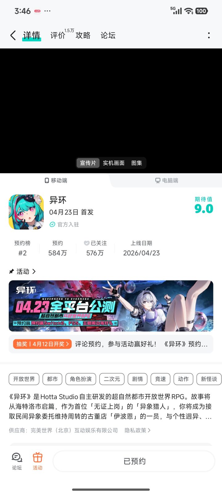 本期游戏列表 蓝色星原:旅谣 4月3日正式上线 星之海 4月07日海外上线 亿万光年 4月08正式上线 闪之轨迹:北方战役 4月09不限量删档测试 异环 4月23日正式上线 猫娘乐园:世界连结 4月14日海外上线 #游戏安利