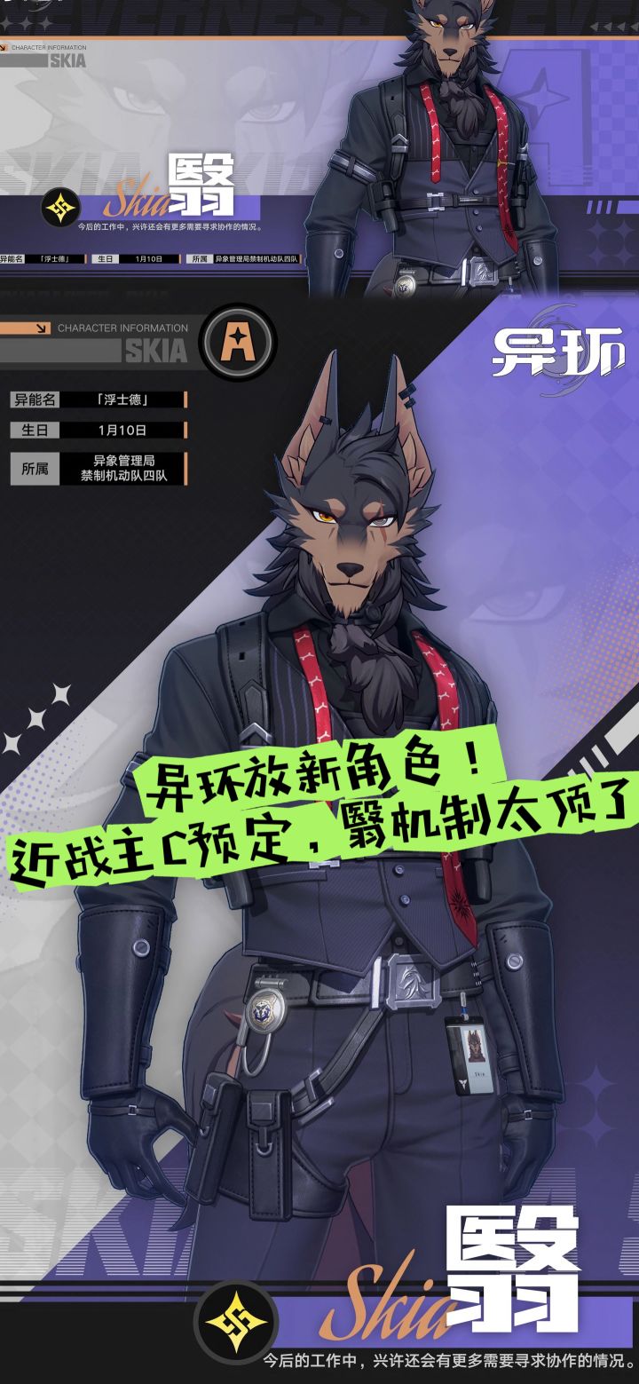 完美世界旗下Hotta Studio研发的超自然都市开放世界手游《异环》,近日正式曝光全新角色翳。这位狼首造型的福瑞角色定位近战主C,凭借独特影子机制与高机动性,迅速成为公测前玩家热议的焦点。翳主打相属性伤害,核心围绕影子系统构建整套输出循环,既能打出多段连击伤害,也具备不俗的范围打击能力。其最具特色的便是独一份的潜影模式,可化作暗影形态在地面与墙面自由移动,也是当前已爆料角色里唯一拥有特殊潜
