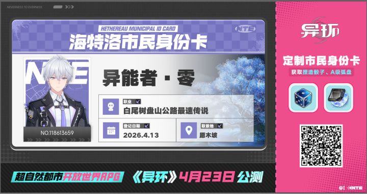 「想要更多吗?」「可惜那边有个家伙一直盯着我,不然我们还能玩的更多。」「呵呵,是玩笑哦~太弱的我可没有兴趣。」《异环》将于 4 月 23 日全平台上线,预约活动现已正式开启!点击下方小卡,邀请好友一同定居海特洛吧!嘿,你和《异环》好像很有缘!预约并在评论区写下你想在海特洛开启怎样的生活,即有机会获得——《异环》随机周边*1(10名)期待你得到这份好运!#异环公测定档0423 #异环公