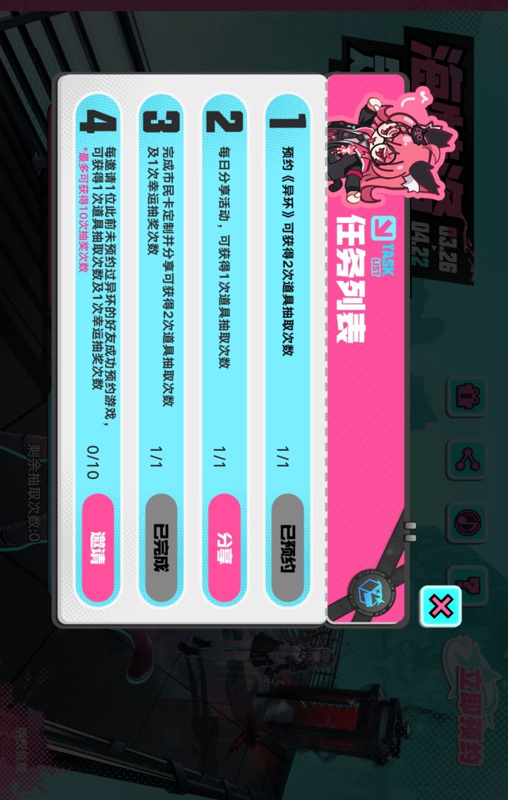 「这次的任务还没算结束……不能放松。」「……你是想透口气了吗?」「算了,休息……也是为了更好地工作。」《异环》将于 4 月 23 日全平台上线,预约活动现已正式开启!点击下方小卡,邀请好友一同定居海特洛吧!嘿,你和《异环》好像很有缘!预约并在评论区写下你想在海特洛开启怎样的生活,即有机会获得——《异环》随机周边*1(10名)期待你得到这份好运!#异环公测定档0423 #异环翳 #异环