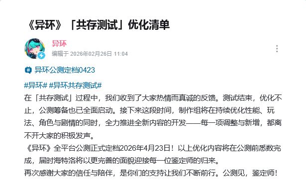 公测优化清单,关键优化项汇总! #新年新安利 #异环 #异环公测 #游戏资讯 #开放世界 #二次元 #手机游戏