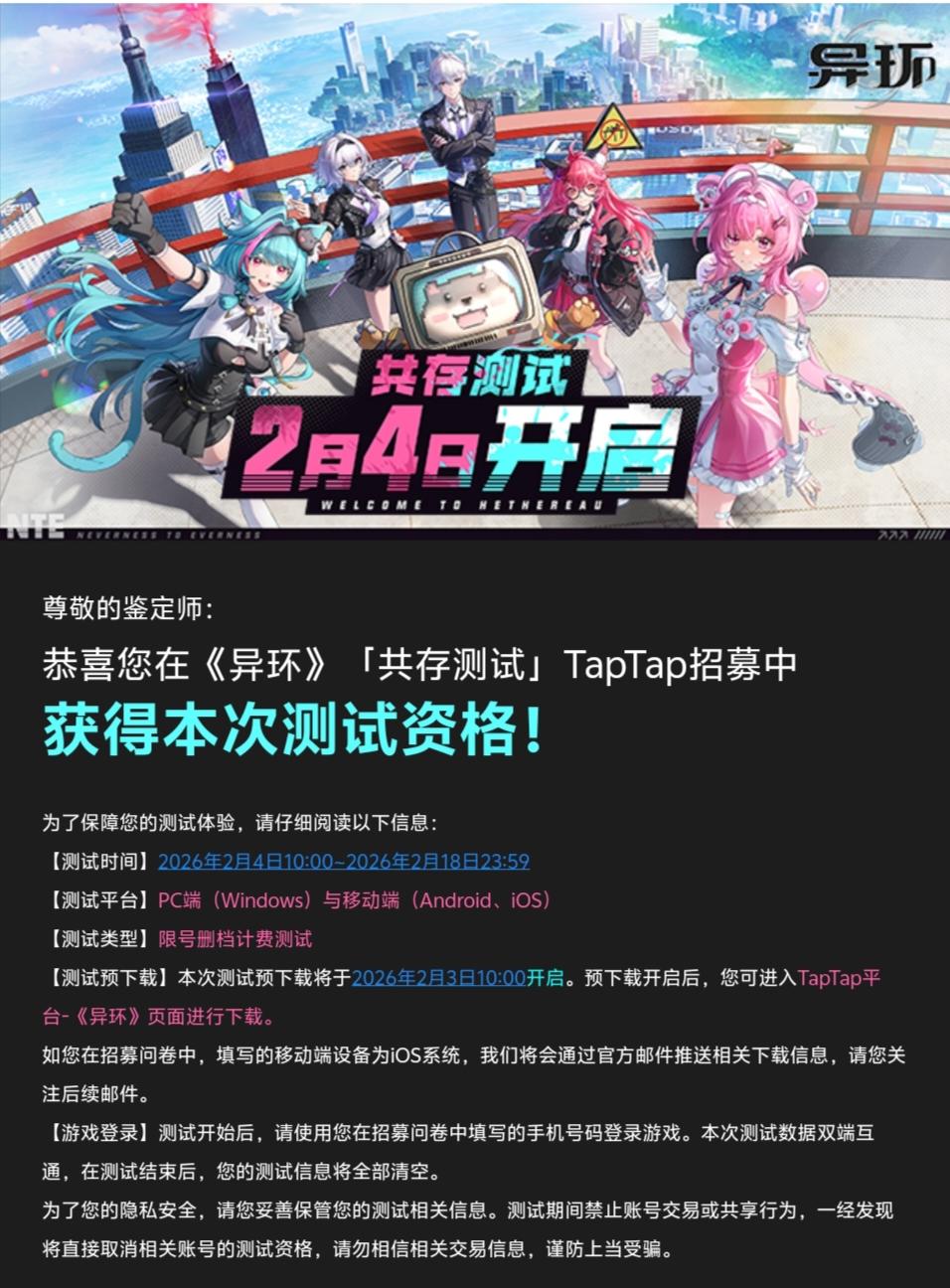 资格求...没抢到资格的宝子们先别慌 还有波taptap的测试现在去填问卷还可以抢 蚊子再小也是肉#异环 #异环三测招募开启