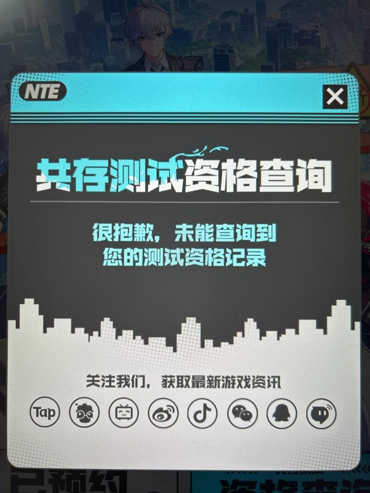 各位鉴定师,《异环》「共存测试」测试资格正在陆续发放中,请您留意是否收到相关通知。同时您也可以通过以下方式主动查看——➤《异环》「共存测试」资格查询点击下方链接前往《异环》官方网站,点击【资格查询】按钮,完成登录验证后,即可查询您的账号是否获得测试资格。立刻前往:*本页面仅支持通过《异环》官方网站、TapTap填写招募问卷及参与官方活动「电玩城大作战」的鉴定师查询。在其他平台参与招募或活动获