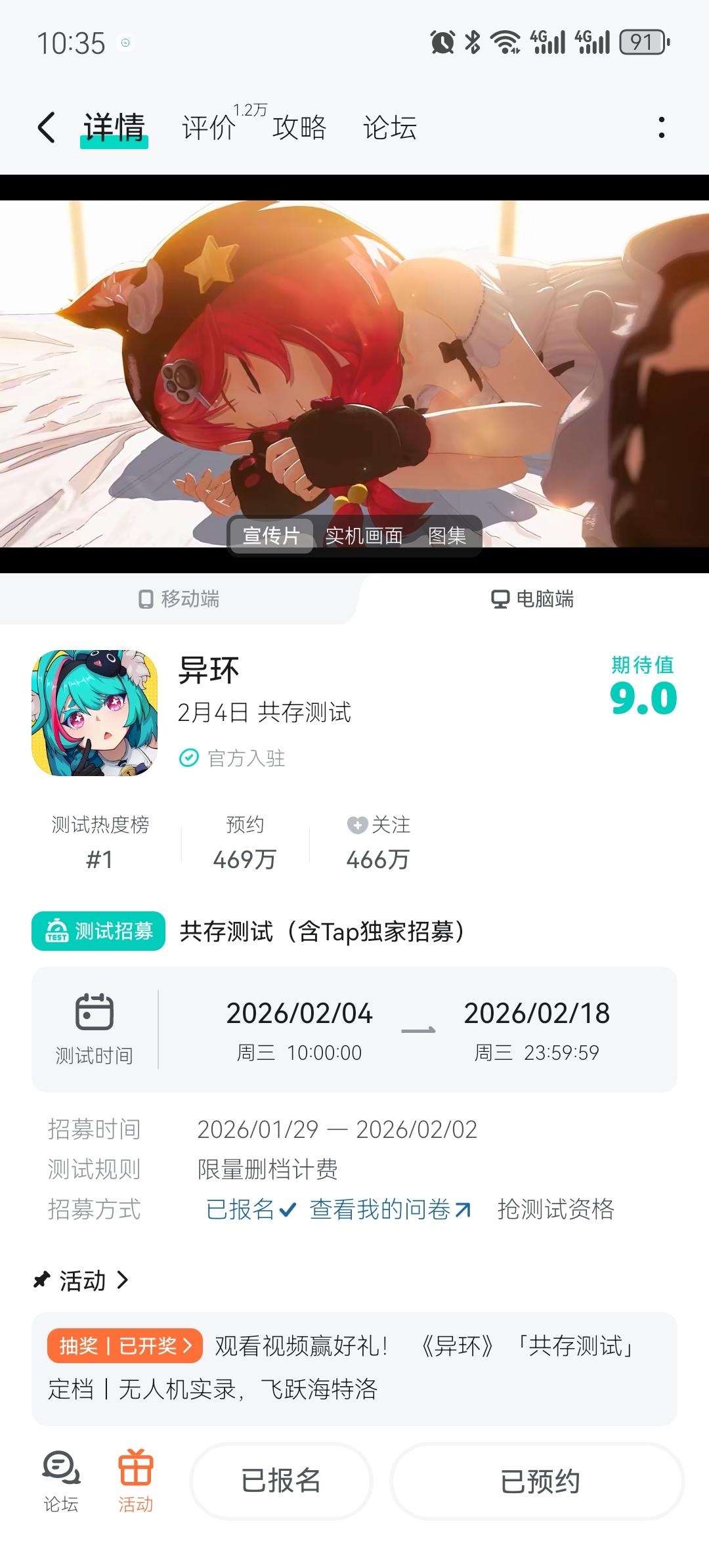 异环开启「共存测试」资格查询,玩家热议大的来啦家人们!完美世界旗下开放世界新作、由Hotta Studio自主研发的超自然都市角色扮演游戏《异环》,它的「共存测试」资格查询现已开启,大伙总算可以知道自己有没有获取测试资格啦!据悉想要查询这次的资格中没中,大伙需要使用安卓端设备登录bilibili,并前往《异环》(招募测试)页面,没中的小伙伴们也可以前往其他论坛碰碰机会,就比如来tap填问卷碰