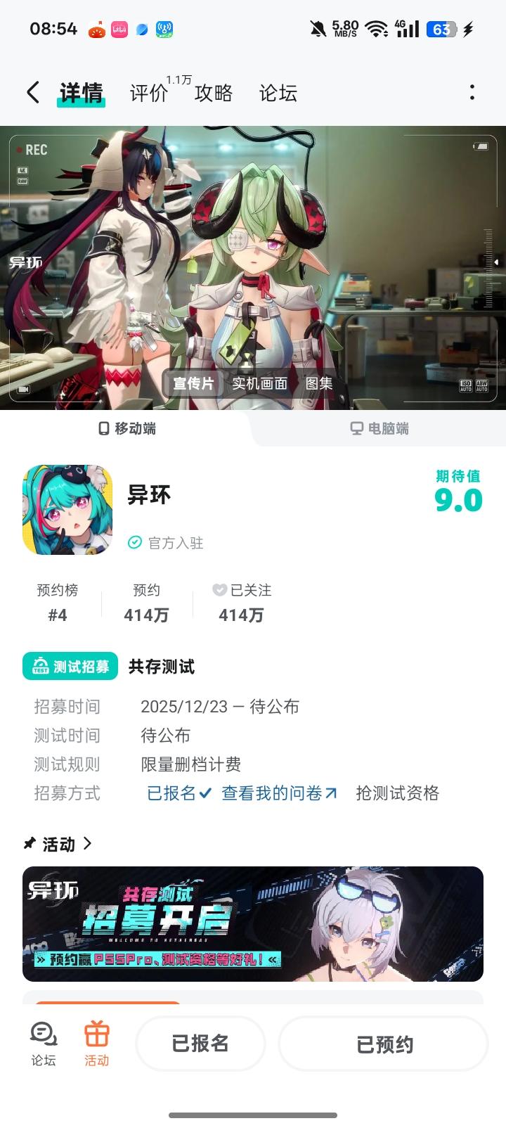 幻塔工作室新作终测!《异环》共存测试即将开始由《幻塔》开发团队(Hotta Studio)打造的超现实都市开放世界RPG《异环》,官宣公测前最后一轮测试——「共存测试」招募火爆开启!核心测试信息速览:关键时间点别错过✅️招募截止:1月23日11:00(仅剩最后几天,问卷提交即有机会解锁资格)✅️预下载开启:2月3日上午10点(PC/安卓数据互通,支持跨平台体验)✅️测试启动:2月4日上