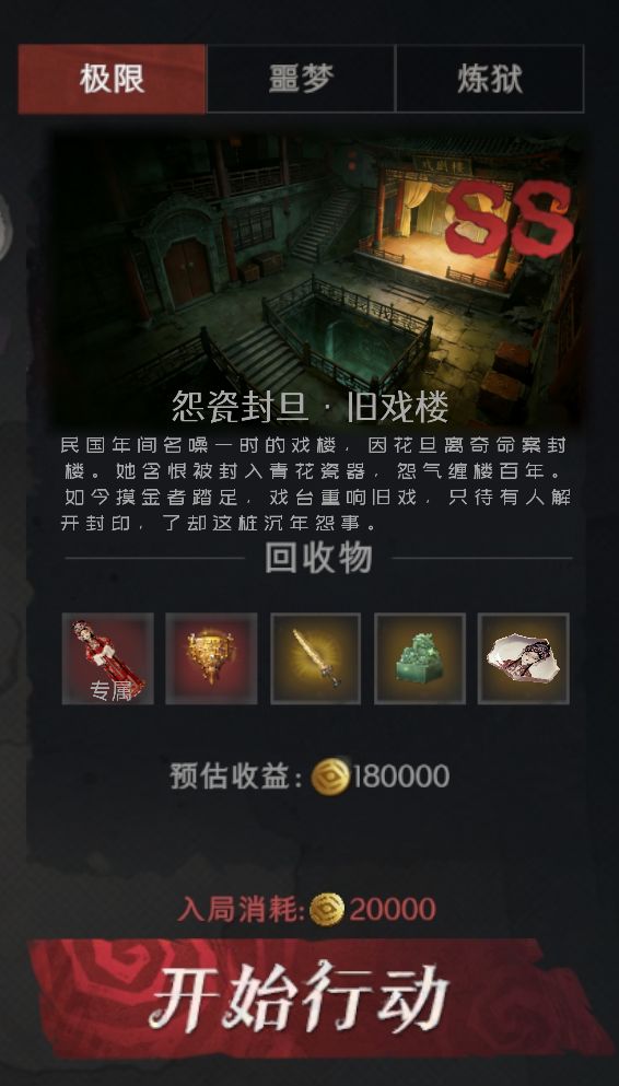 地图背景介绍:民国年间名噪一时的戏楼,因花旦离奇命案封楼。她含恨被封入青花瓷器,怨气缠楼百年。如今摸金者踏足,戏台重响旧戏,只待有人解开封印,了却这桩沉年怨事。怪物机制介绍:员工捡到瓷器碎片将会在员工附近生成瓷花旦。 被瓷花旦锁定的员工会降低移速并触发鬼打墙效果。(该效果不可使用传送)瓷花旦会开始表演并靠近员工此状态为无敌。 当他靠近员工时会用水袖发起攻击。 瓷花旦攻击时无敌状态会解