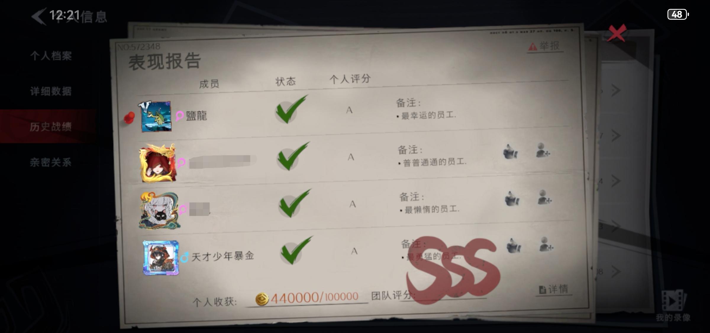 避雷一下这个人,起因是开局这个人像另一个队友要装备,然后另一个队友发了问号,后面我开到了鬼玺,他问我能不能给鬼玺给他,我没理他,后面我棺又开了个戒指,然后我本来把小熊猫放棺椁上了,然后他首先是跳到我面前,然后把小熊猫从棺椁上抱到我脸上,然后故意把小熊猫弄哭就跑了,后面恰好我看到旁边有个楼,我就跳下去才没被打到,因为我骂人能力不行,后面我往下面跳,他也跟着我,还一直拿剑戳我,后面我懒得和他争,我就准