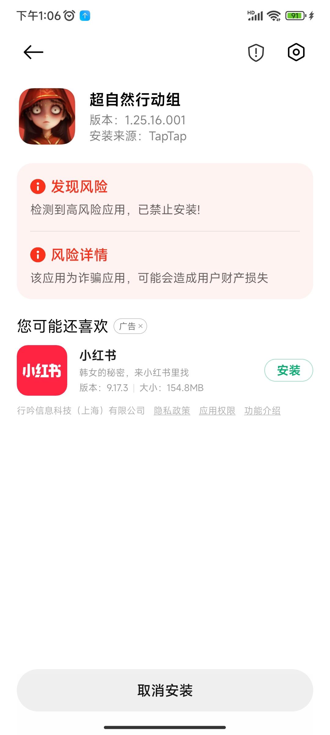 红米手机把游戏定成诈骗软件了,游戏没法安装了。