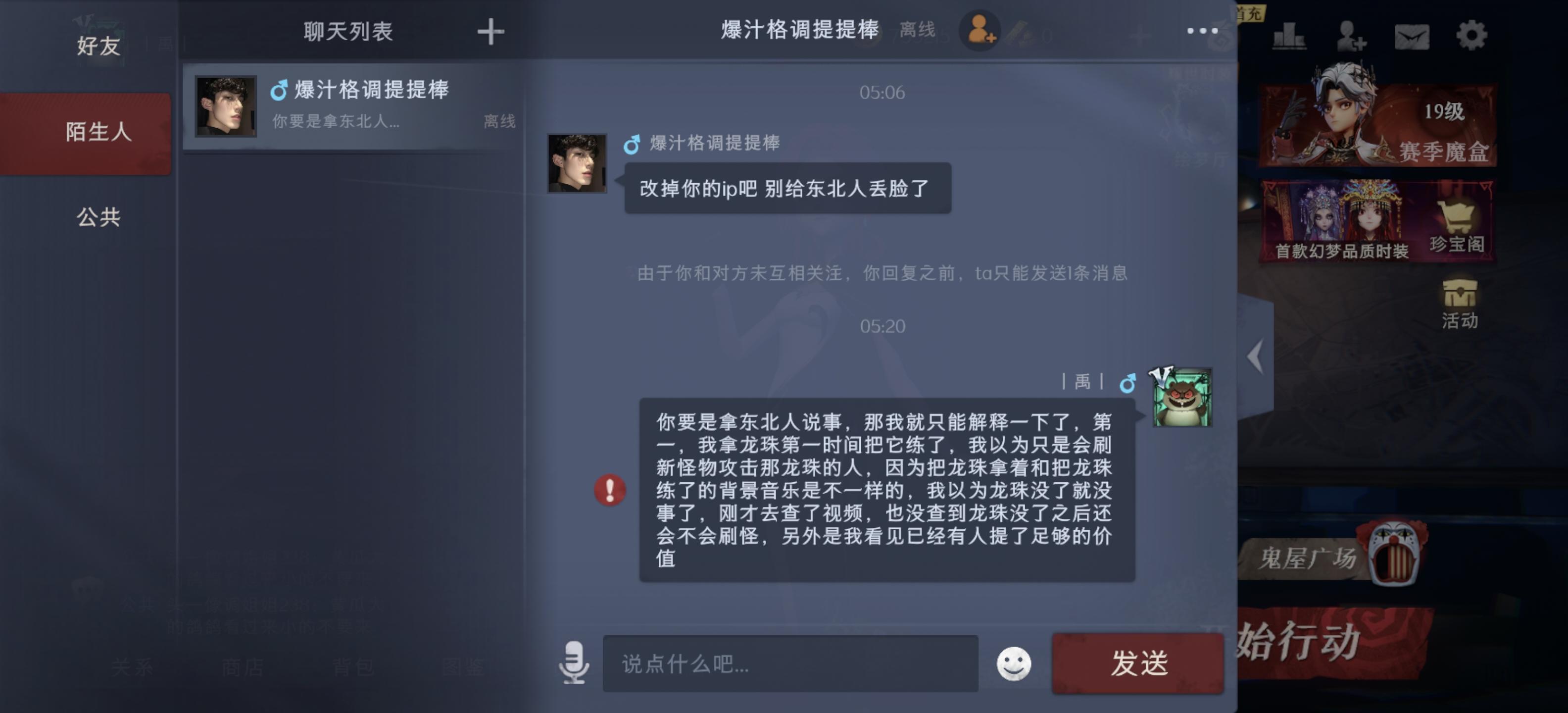 这个事挺难评的,我知道龙珠拿下来,放在手上,会有很多怪过来抓我,但队友拿龙珠的时候,没有怪来打我呀,所以我一直不知道所谓的增加难度,这局,我没合出来好东西,下午七点快到八点的时候,我这边显示两个队友每个人提交了一个双鱼玉佩,我就准备撤离,撤离路上,看见个龙珠,我想着,既然能撤离了,那就把龙珠合了,有几率出好货,我之前也这么干过,没人说过我,所以我真不知道,然后这个人就在游戏里骂我,骂我就算了,骂我