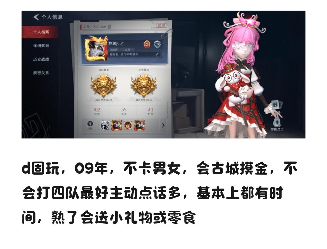 滴一个靠山,零氪(以后会冲),有兔子,只要会摸进会打四队,声音好听就行