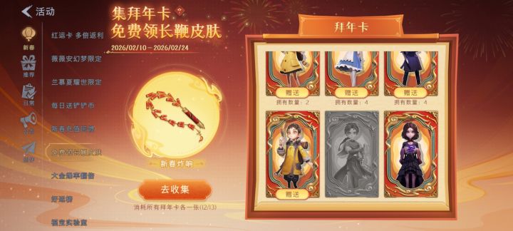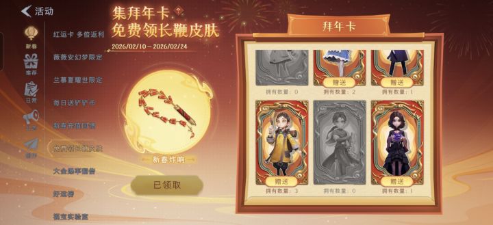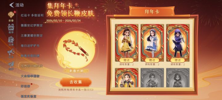 有没有换拜年卡的兄弟我缺零,薇薇安,莉莉,兰,我有多小满,临云,逍遥1张爱德华,502,2张,阿念3张欢迎各位大佬来换