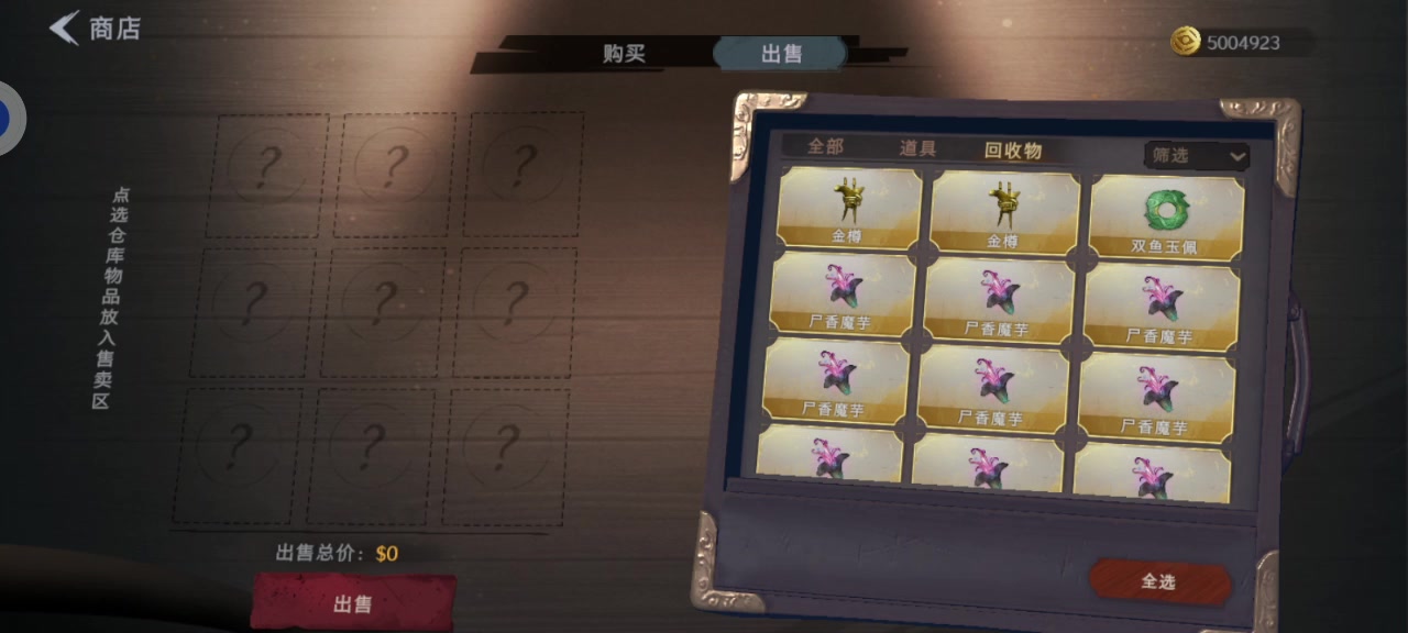 背包终于是装不下了,把一背包的鬼玺和魔芋都卖了
