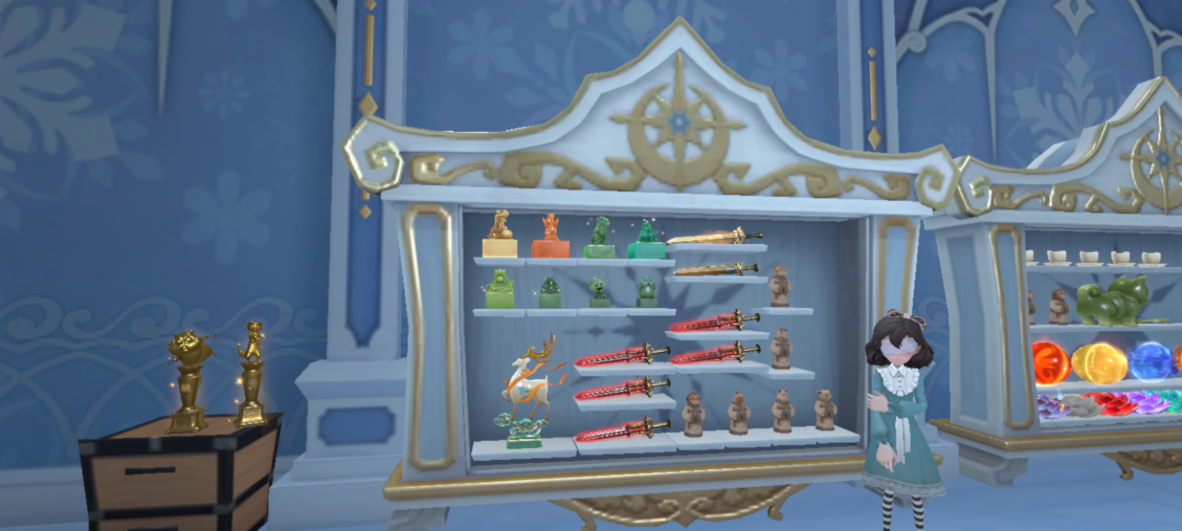 地图背景介绍:民国年间名噪一时的戏楼,因花旦离奇命案封楼。她含恨被封入青花瓷器,怨气缠楼百年。如今摸金者踏足,戏台重响旧戏,只待有人解开封印,了却这桩沉年怨事。怪物机制介绍:员工捡到瓷器碎片将会在员工附近生成瓷花旦。 被瓷花旦锁定的员工会降低移速并触发鬼打墙效果。(该效果不可使用传送)瓷花旦会开始表演并靠近员工此状态为无敌。 当他靠近员工时会用水袖发起攻击。 瓷花旦攻击时无敌状态会解