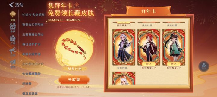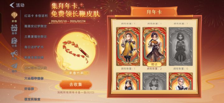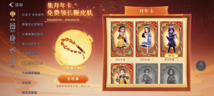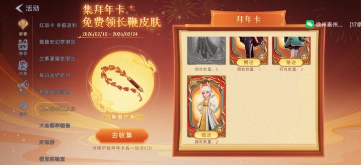 有没有换拜年卡的兄弟我缺零,薇薇安,莉莉,兰,我有多小满,临云,逍遥1张爱德华,502,2张,阿念3张欢迎各位大佬来换