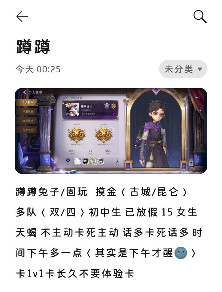 想要一个经常一起玩的莉莉/可以加Q/会看古城小抄四队秒睡