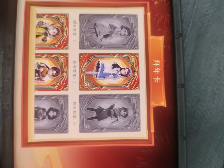 拜年卡 数量(张)爱丽丝 5零 3阿念 3逍遥 1巫铃儿 1艾伦 7爱德华 4兰 4小满 4临云 5实在抓不到少帝,没招了#超自然行动组 #超自然行动组拜年卡