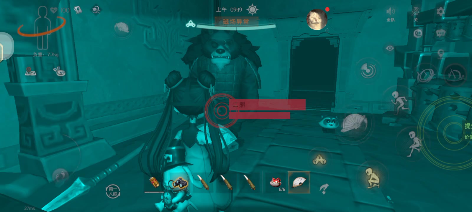 技能机制介绍: 员工捡到瓷器碎片将会在员工附近生成瓷花旦。 被瓷花旦锁定的员工会降低移速并触发鬼打墙效果。 瓷花旦会开始表演并靠近员工此状态为无敌。 当他靠近员工时会用水袖发起攻击。 瓷花旦攻击时无敌状态会解除。 瓷花旦攻击前摇为0.7秒后摇1秒伤害120点,可通过蹲下或跳跃进行躲避。 若被瓷花旦击中一次她会和回收物瓷器碎片一起消失 若躲掉攻击可以接着攻击她的面部她便会消失回收物瓷器碎片则保留。 回