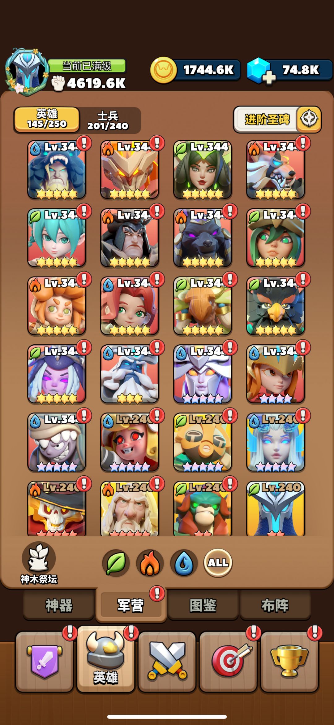 区服:s901 角色名:月亮枕在云边 游戏ID:1217906-90100630714 五、资源获取及消耗分析 钻石:可通过活动、任务、充值等方式获取,可用于购买万能碎片、天命神器箱子、紫券等稀有资源。避免竞拍高价物品(如新服猴子价格超过1.5W钻石则不推荐) 号角:抽卡积累,用于在号角特选中获取心仪角色。 紫卷:通过元素塔和每周活动获得。 狗粮:只建议用紫色英雄(四星),因为很多的s卡后续都有用