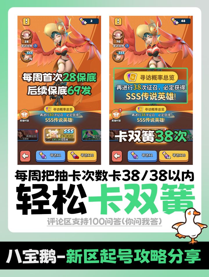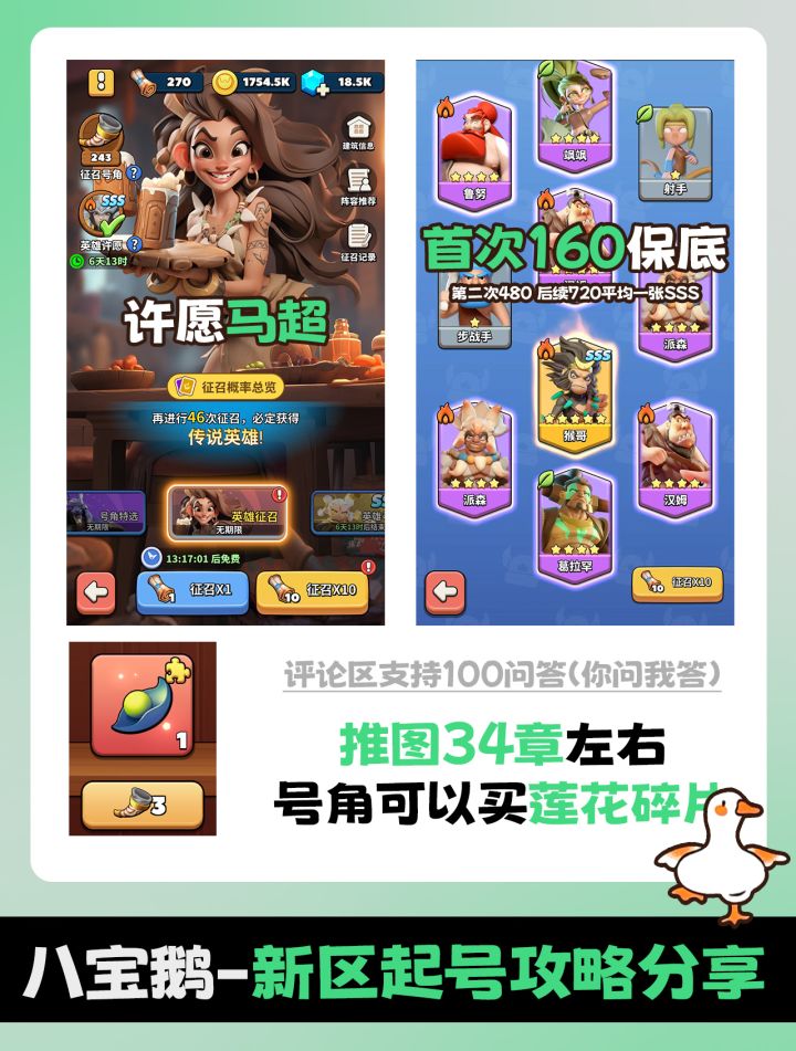 首先,去新区一定要选择周一到周四,不然浪费一只孟婆,升级建筑,书库最后升级,优先酒馆到10级,八级开启抽孟婆,好像是29抽出,然后开启许愿出一个本体,每周免费许愿一只,缺木材一定是因为升级书库里面的东西,千万别碰,前十天都别碰,三天后开启孟婆,周一前记得抽出来,商店挑战卷和大乱斗卷都买,第二天或者第三天争取竞技第一拿一波奖励就行 说一下紫娟,商店能买的都买,还有Tap签到,小氪只冲限时活动的98