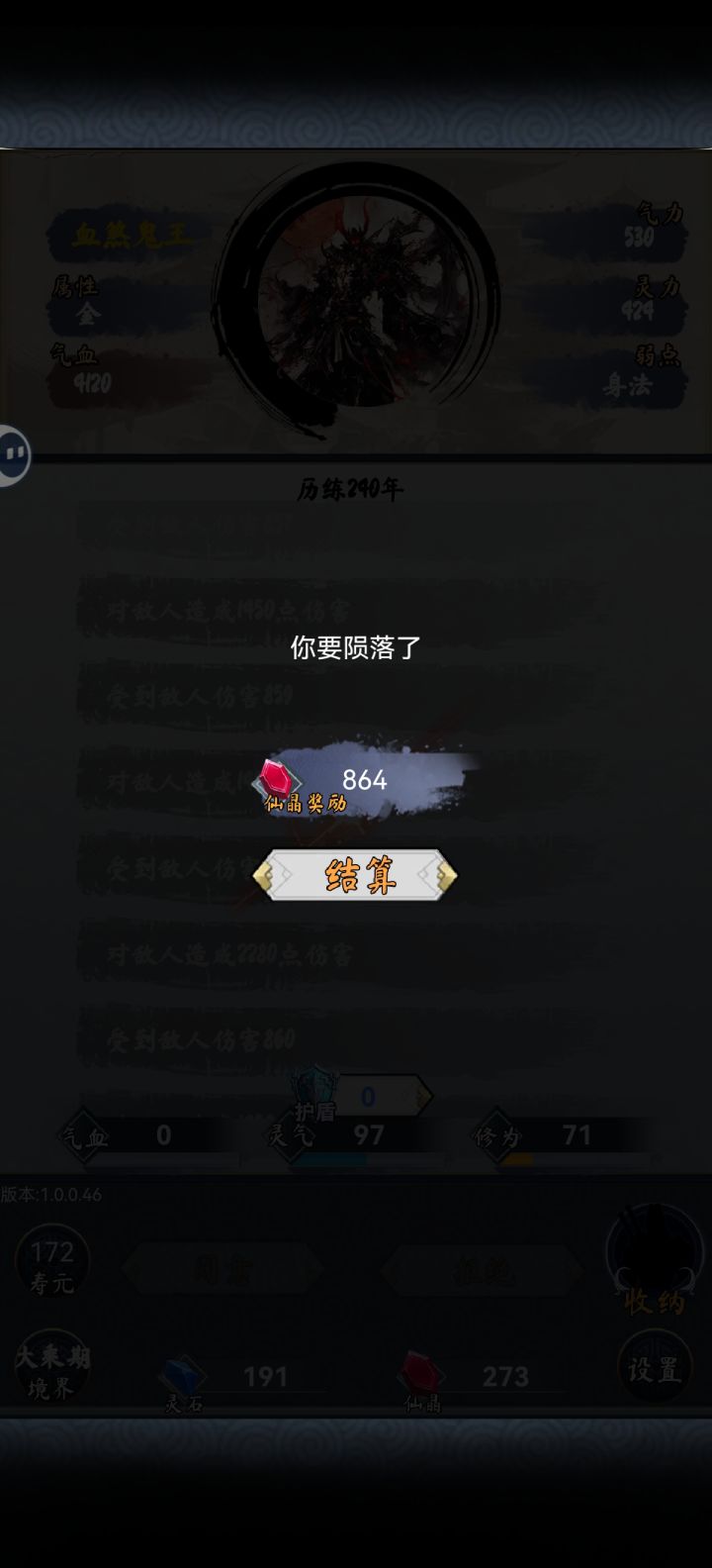 目前大乘期就满级了,遇见鬼王打不过