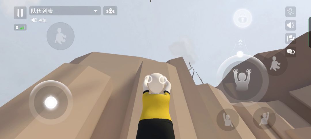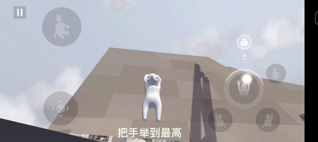 在人类一败涂地中实现爬墙的方法有摆荡爬墙、水平爬墙、垂直爬墙(交替式)以及垂直爬墙(跳跃式)这四种方式。 方法一:摆荡爬墙 双手抬高贴住墙面后,松开任意一只手臂控制人物左右摆荡,当摆荡至最高点处时,另一只手抓住墙面继续摆荡,如此反复即可上升高度。此方法适用于攀爬墙体较宽的高墙。 方法二:水平爬墙 双手抬高贴住墙面后,始终以一只手臂作为固定身体位置的轴,另一只手臂带动身体在墙面上进行水平“翻滚”,如