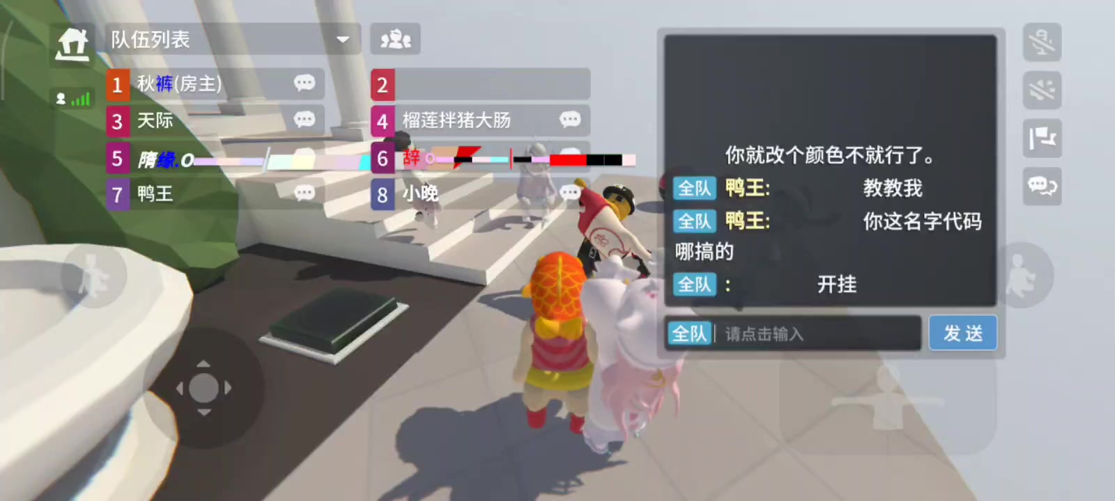 进了一个进了一个别人的房间,发现我头上的群主,被外挂改到别人头上了,后面翻了一下录屏才发现,视频中的鸭王,和彩色昵称:辞,两个人是认识的,应该是这个彩色昵称的,我人都没动一下,房主就被转到鸭王头上了,他们两个都是朋友
