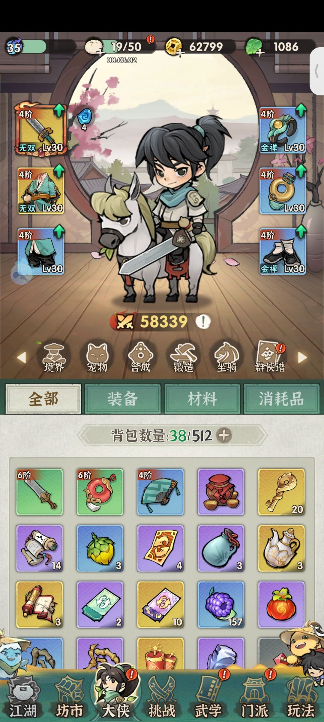 0氪首冲最强攻略 首先就是关于叶子的合理使用,零氪玩家叶子千万不要乱花,一定要攒着,存到2w叶子,还要等集字和时来一起才花,单出一个都不要花。这样的话最少可以白嫖到两个以上的化身,或者两个彩宝。而且个人觉得机子活动拿蛋的性价比是最高的,比任何法宝都高,因为拿到蛋可以加一条命。零氪在玩的过程中呢,其实没有必要着急去推图,当作养老游戏就好,门派和侠义每天就有80左右了。再有就是任何活动0氪玩家随便参与