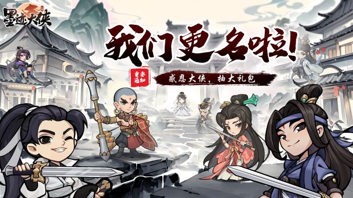 敬爱的各位大侠: 开门见山—— 正如各位大侠所见,因运营和授权等各方面的原因,我们即日起正式更名为《墨迹大侠》啦! 各位大侠也不要过于担心,游戏还是那个游戏,原先下载了《行侠仗义五千年》的大侠不影响体验,如果您是萌新大侠,下载了《墨迹大侠》也不会存在是2个游戏的体验! 总而言之,我们只是改了个名字,其他的一切都是正常运行!小侠也还是我,我还是会定期发礼包,做抽奖哒! 为了感谢和回