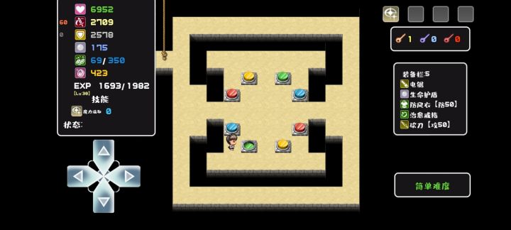 我先说一下。自己这个情况。玩了一天了,有很多没有注意到的地方,现在玩不下去了,得重开。1.11层左上角有隐藏关,没看到,害我重开。有一个先攻鞋子2.第1层蓝色门里面一个煤球那个门别开,一个蓝色钥匙换那里面的东西血亏。3.永久攻击力下降那个别要。4.不可以一味堆防御,20-30层大量破甲怪,需要攻击高一点。但是有种怪攻防数值和你一样,需要你控制攻击=防御,然后用点燃杀。5.看到1000多的