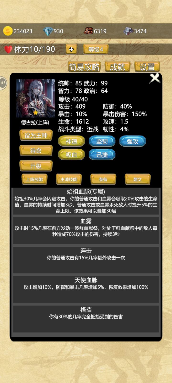 游戏节奏比较慢,比较休闲,是个养老好游戏该有的玩点基本都有,打boss爆装备,塔防。有建议或者bug反馈群主都很乐意接受人很好。首先进入游戏可以利用礼包码抽英雄刷个开局号论坛有各个英雄属性图这里不贴了强力推荐德古拉或者安娜,主线推关卡主要能站的住才能推,这两个英雄是最能抗的,输出英雄目前版本不推荐近战,远程也有两个卡尔或者海拉,最后还有一个博德也推荐比较全面的英雄打boss必备,刷好开局