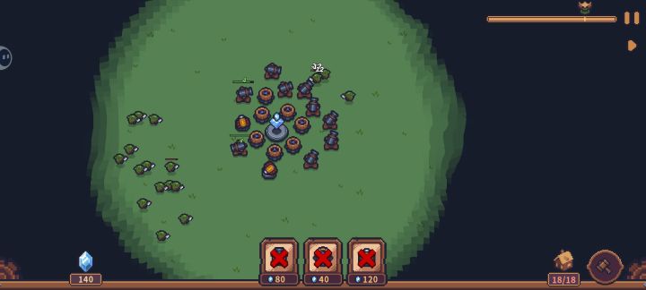 而在这款游戏中加入了利用碰撞来调整塔的位置,还可以击退兽人,是很有意思的设计,让玩家操作更多样,同时游戏兽人的强度也是让玩家不得不利用这个机制。