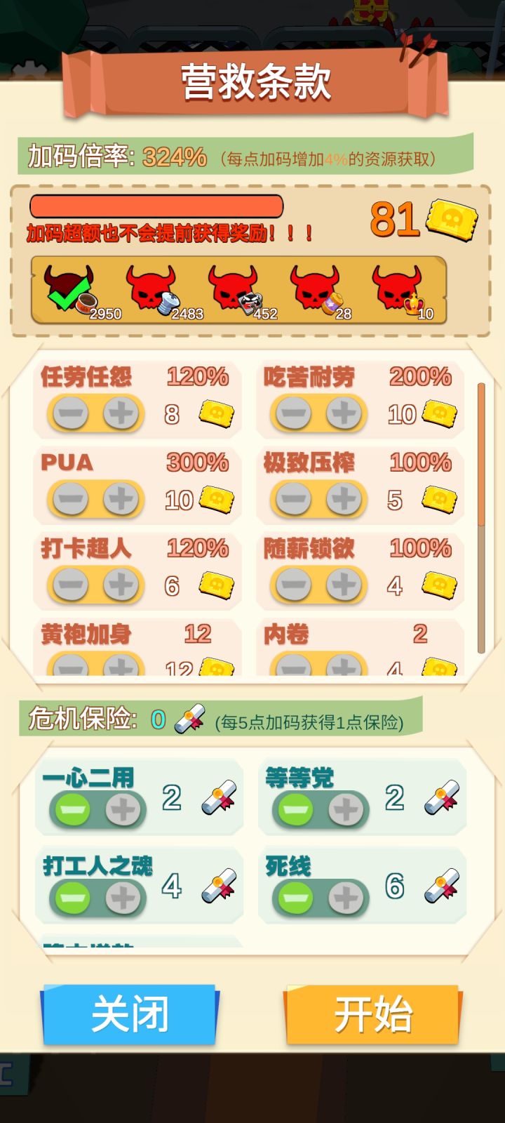 1.关于羊圈(图二)早在1.0版本上线的羊圈其实并没有设计好,无法解锁2.关于史莱姆技能三(图三)在史莱姆页面,锁住的第三个技能并没有设计好,无法解锁3.关于热度加点(图四)在热度页面,被锁住的热度无法减少,这是因为没有减少保险,1个保险等于5个热度点,所以热度会被锁住4.关于三种上限热度的首次通关上限为30热度边境的挂机效率上限为761.5无尽的技能上限为4个5.关于各种自动