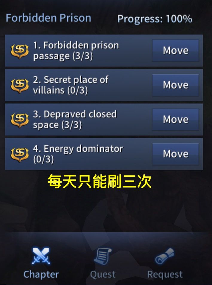 求问,看网上攻略说打完第八章之后的隐藏章节每关可以每天刷3次材料或者碎片,但我这怎么显示不一样?是改版了吗?(第一张图是网上攻略截图,第二张图是我的)