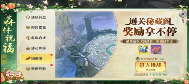 万物生长,春意盎然!在新版本“魔渊之怒”更新上线同时,一大批福利活动也正在袭来,全新坐骑冰晶咆哮、典雅的精灵王时装...登录游戏收集道具,更多豪礼统统拿下!【活动1 全新活动副本秘技阁限时挑战,奖励拿不停】【活动时间】:2019年5月16日00:00-2019年5月18日23:59【活动说明】:活动期间,通关秘藏阁可以获得海量道具,通关次数越多,奖励越丰厚!(开服15天以上区服开启)【活动
