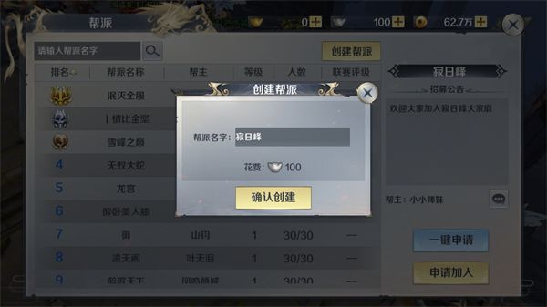 自从昨天剑魂大陆迎来了众多少侠,师门“寂日峰”也就开始热闹起来。师父为了敦促弟子勤勉练武,决定举办首届寂日峰武道大会,万元犒赏战力精进的佼佼者。别看我只是师门最小的小师妹,但努力练功不放松,是不会拖师兄师姐们后腿的。我开始了下山历练,努力提升战力。一个人的力量总是有限的,这时候抱团更容易成长。虽说我只是小师妹,但是也有一颗上进的心。千里之路,始于足下,不能一跃成为掌门,先创建个帮派,当个帮主也