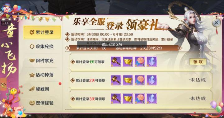 萌动六一 《剑与契约》童心飞扬活动开启童心飞扬,欢度六一! 虽然已经不再是儿童了,但还是有一颗闪闪发亮的童心,在游戏里也要过儿童节!同时还有一大批福利活动等你参与,登录游戏送好礼、布偶儿童时装、超折扣大礼包、更有趣味多多的砸蛋活动,你会砸到什么惊喜呢?【活动1 乐享全服优惠大放送,每天登陆领豪华奖励】【活动时间】:2019年5月30日00:00-2019年6月1日23:59【活动说明】:活动