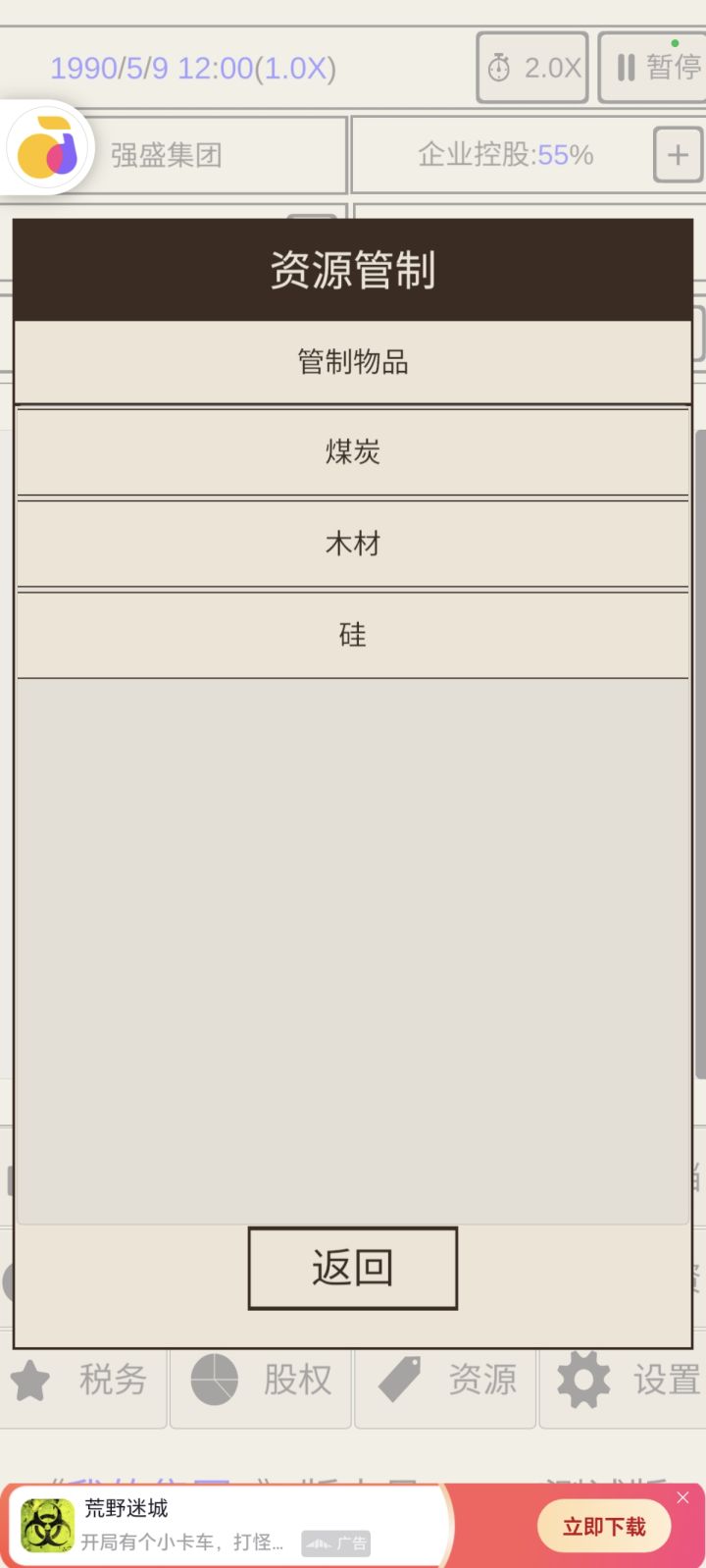完了一天多,感受是没用第一部好玩。一,百分之百股权开局不需要资金支援无法游戏望改进二,建造的生产线太慢需要三十天且资金需求非常大,如一条十五的生产线需要快三千万的资金且还需要等三十天。三,市场需求不随着游戏增加而增加,到中后期资金增长非常缓慢。四,资源矿产刷新非常缓慢,采集速度非常缓慢,石油不刷新。五,造车需求钢铁太高,若要完成年需求量,需要钢生产线四千五百每小时,铁资源供应需要四千五百